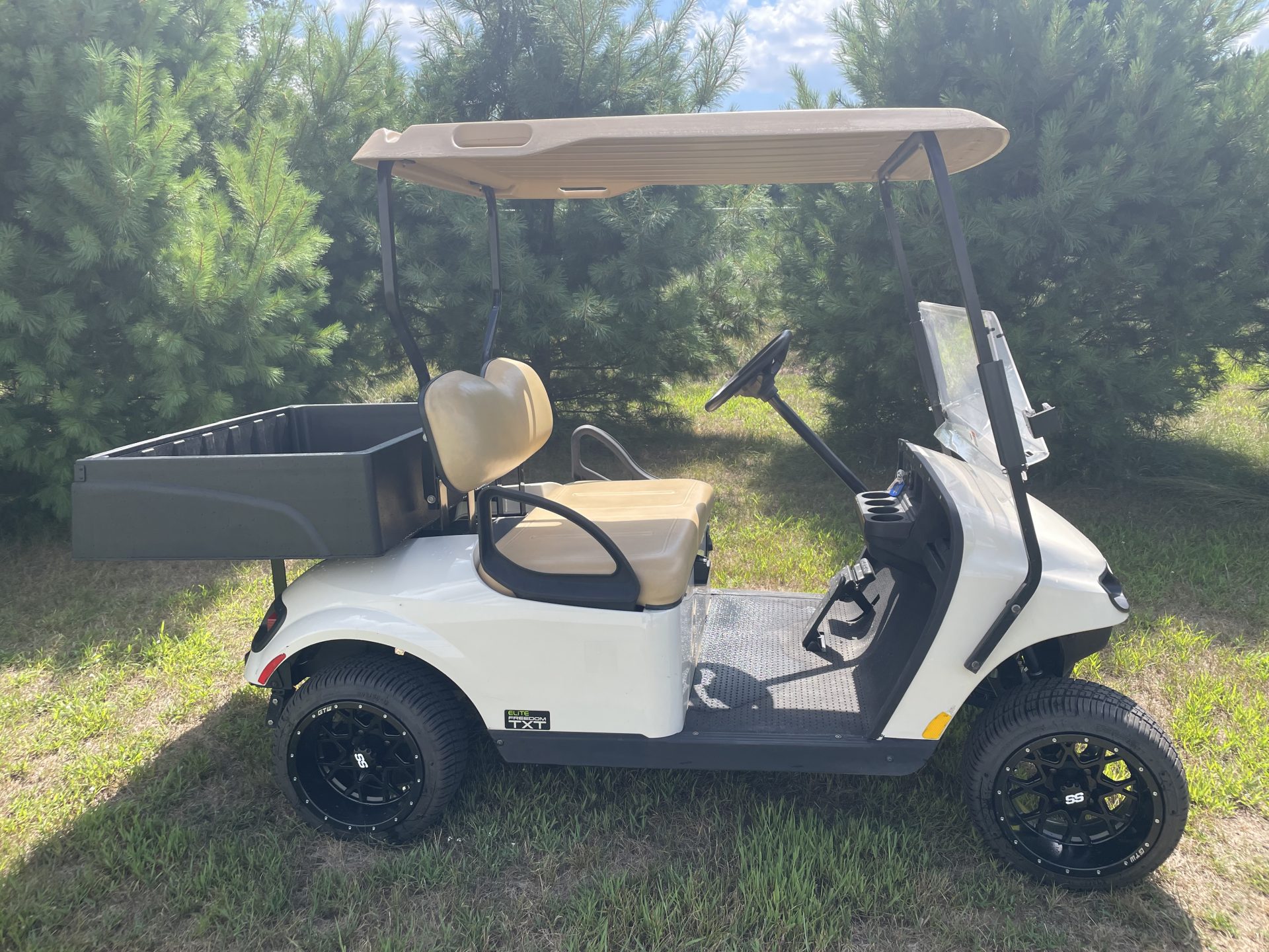 Cargo Box Added!!! Experience the perfect blend of functionality and fun with this 2020 E-Z-GO Freedom TXT Elite golf cart. Designed to offer both style and efficiency, this electric-powered marvel is ideal for those who seek eco-friendly transportation.  This model is built to accommodate up to two passengers comfortably, making it perfect for family outings, neighborhood cruises, or simply riding with friends enjoying the outdoors.  Under the hood, this electric golf cart combines the reliability and power of E-Z-GO engineering with advanced electric technology. Say goodbye to the hassle of gas and embrace the quiet, smooth, and efficient ride that only an electric motor can provide. Despite being a used model, this 2020 E-Z-GO Freedom TXT Elite is in excellent condition, having been meticulously maintained to ensure peak performance. It features a robust build quality that E-Z-GO is famous for, promising durability and longevity.  The intuitive controls make it easy to drive, even for those new to golf carts. If you’re looking for a practical yet exciting way to travel short distances, this E-Z-GO Freedom TXT Elite is the perfect choice. Its combination of comfort, style, and eco-friendly technology makes it a standout option for anyone in the market for a used electric golf cart. Don’t miss the opportunity to own this fantastic vehicle that’s ready to offer many more years of enjoyment.
